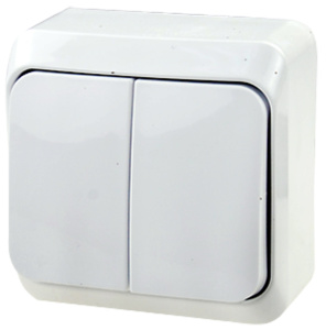 Выключатель двухклавишный наружный "Этюд" (белый, сх.5)