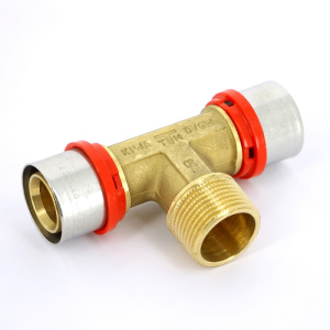 Тройник Tiemme с наружной резьбой латунь (пресс)