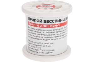 Припой мягкий бессвинцовый Rexant ПОМ-3 500 г 2 мм (олово 97%, медь 3%, катушка) (09-3507)