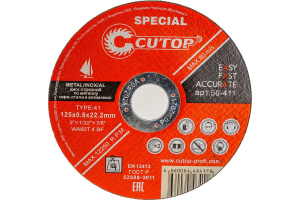 Диск отрезной по металлу, нерж. и аллюминию CUTOP 125x0,8x22,2 мм Special (50-411)