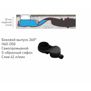 Желоб Berges водосток Super Slim матовый хром, S-сифон D50 H60 боковой