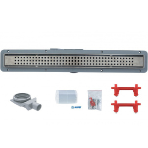 Лоток душевой TIM с решеткой под плитку, сухой +гидрозатвор хром