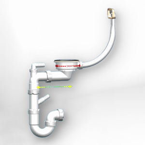 Сифон для мойки с выпуском 3 1/2"x40 и круглым переливом, с гибким отводом Unicorn В426