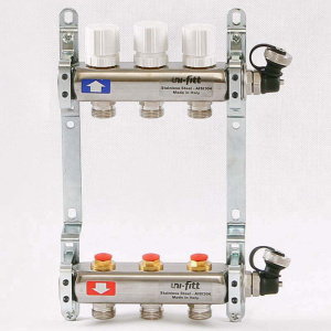 Коллекторная группа Uni-Fitt 3 отвода 1"х3/4" с балансировочными и термостатическими вентилями