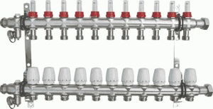 Коллекторная группа Uni-Fitt 12 отводов 1"х3/4" с балансировочными и термостатическими вентилями
