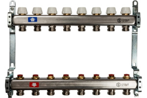 Коллекторная группа 8 отводов 1"x3/4""(18)EK без расходомеров Stout (нерж.сталь) (SMS-0922-000008)