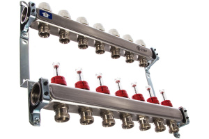 Коллекторная группа 9 отводов 1"x3/4""(18)EK с расходомерами Stout (нерж.сталь) (SMS-0917-000009)