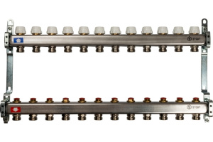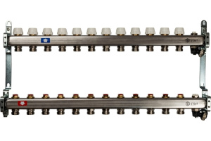 Коллекторная группа 12 отводов 1"x3/4""(18)EK без расходомеров Stout (нерж.сталь) (SMS-0922-000012)