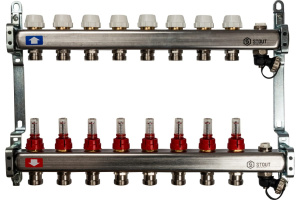 Коллекторная группа 10 отводов 1"x3/4""(18)EK с расходомерами Stout (нерж.сталь) (SMS-0917-000010)