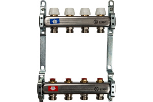 Коллекторная группа 4 отвода 1"x3/4""(18)EK без расходомеров Stout (нерж.сталь) (SMS-0922-000004)