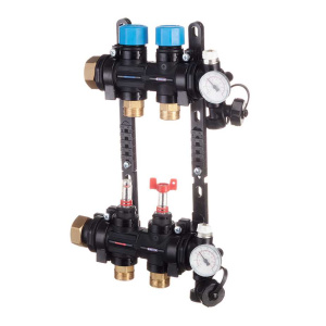 Коллекторная группа 2 отвода 1" с расходомерами и термометрами Henco (композит) (UFH-0605MDK02-03L)