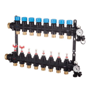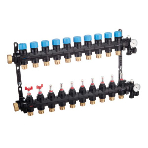 Коллекторная группа 9 отводов 1" с расходомерами и термометрами Henco (композит) (UFH-0605MDK09-03L)