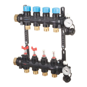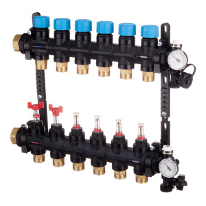 Коллекторная группа 6 отводов 1" с расходомерами и термометрами Henco (композит) (UFH-0605MDK06-03L)