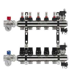 Коллектор 4 отвода регулируемый 1"х1/2(16) Okseler (никель)