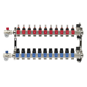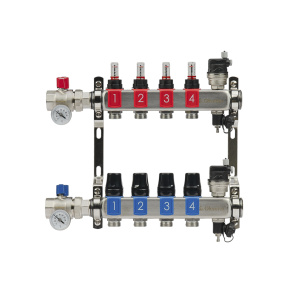 Коллектор 4 отвода с шар. клапанами 1х1/2"(16) Okseler (никель)