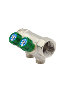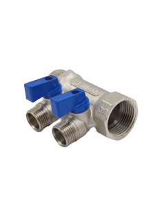 Коллектор 2 отвода с шар. клапанами 3/4х1/2"(16) Okseler (никель)