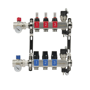 Коллектор 3 отвода с шар. клапанами 1х1/2"(16) Okseler (никель)