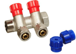 Коллектор 2 отвода с шаровыми клапанами 1"x1/2""(16) Stout (латунь, красные ручки) (SMB-6200-011202)