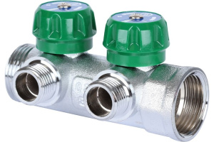 Коллектор 2 отв. с шар. клапанами 3/4*1/2"Н TeRma (никель) (14015)