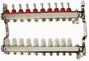 Коллекторная группа 10 отводов 1"*3/4"(18)EK с расходомерами TeRma (нерж.ст) (14110)