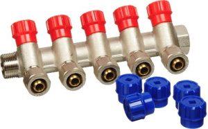 Коллектор 5 отв. регулируемый 3/4"*1/2(16) TeRma (никель, с переходниками) (14165)