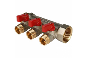 Коллектор 3 отвода с шаровыми клапанами 1"x1/2""(16) Stout (латунь, красные ручки) (SMB-6200-011203)