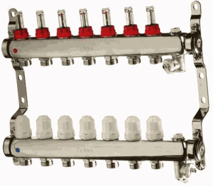 Коллекторная группа 7 отводов 1"*3/4"(18)EK с расходомерами TeRma (нерж.ст) (14107)