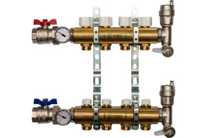 Коллекторная группа 4 отвода 1"x3/4""(18)EK в сборе с расходомерами Stout (латунь) (SMB-0473-000004)