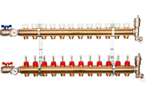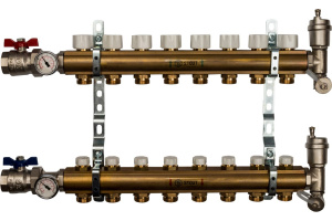 Коллекторная группа 3 отвода 1"x3/4""(18)EK в сборе с расходомерами Stout (латунь) (SMB-0473-000003)