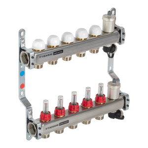 Коллекторная группа Tiemme 5 отводов 1"-3/4" НР ЕК M30х1,5 мм. с расходомерами (нерж.ст) (3920131)