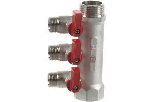 Коллектор 3 отв. с шар. клапанами 1*1/2"(16) (никель) Kromwell красные ручки (EU.ST3042285 3x1x12_k)