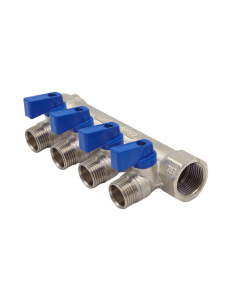 Коллектор 4 отвода с шар. клапанами 3/4х1/2"(16) Okseler (никель)
