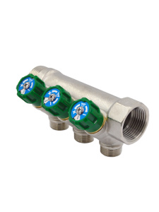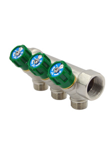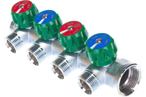 Коллектор с регулируемыми кранами нужен для того, чтобы потоки теплоносителя распределялись грамотно и равномерно по всем контурам системы отопления. В противном случае, при неравномерном распределении воды могут образовываться застои и воздушные пробки. Коллектор с регулирующими вентилями может быть разных видов, например, с двумя, тремя или четырьмя элементами регулировки. Такие детали изготавливают методом горячего прессования, корпус чаще всего производят из латуни, а сверху на него наносят слой никеля. Такие материалы отлично реагируют на воздействие внешней и внутренней среды. Коллектор с регулируемыми выходами имеет свои особенности каждой модели, они отличаются количеством выходов и диаметром резьбы.