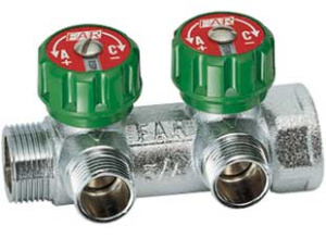 Коллектор проходной регулируемый FAR Multifar (3825 C1) 1" НР-ВР, 2 отвода М24х19