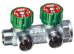 Коллектор с балансировочными клапанами FAR Multifar (3815 C102) 1" НР-ВР, 2 отвода М24х19