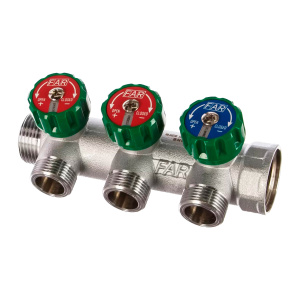 Коллектор проходной регулируемый FAR Multifar (3850 C1) 1" НР-ВР, 3 отвода М24х19