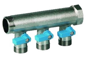 Коллектор 3 отв. с шаровыми кранами 3/4"х3/4"НР под евроконус, Henco синие ручки (VB050503-BLAUW)