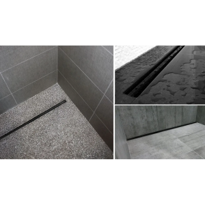 Желоб Berges водосток напольный B1 Keramik нержавеющая сталь, матовый черный, S-сифон D50 боковой
