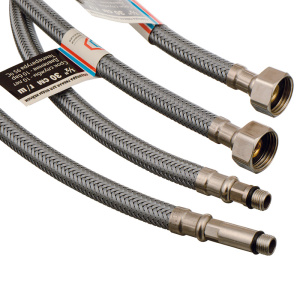 Купить гибкую подводку для смесителя актуально для применения на кухне, в ванной комнате, технических помещениях и др. С ее помощью осуществляется высокопрочное и герметичное соединение, рассчитанное на различные рабочие нагрузки. Пластичность изделия позволяет устанавливать его даже в самых труднодоступных местах.