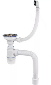 Сифон для мойки с выпуском 3 1/2"x40 и круглым переливом с гибким отводом 40x40/50 Unicorn B426Р