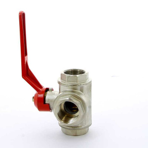 Кран Itap шаровый трёхходовой T-порт (красная ручка-рычаг)