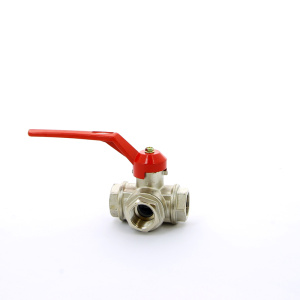 Кран шаровый трёхходовой L-порт Valtec (красная ручка)