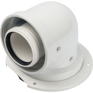 Элемент дымохода конденсац. адаптер 90° DN 60/100 м/п PP-AL с фланцем (совместим. с Bosch)