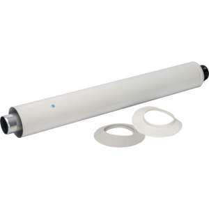 Комплект коаксиального дымохода Arderia 60/100 (отвод, труба с наконечником, накладки) длина 1 метр