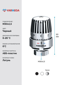 Головка термостатическая Varmega VM110 жидкостная М30x1,5 (хромированная)