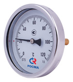 Термометр биметаллический Росма 1/2" БТ-31.211 0-120С, d-63 мм., шток 46 мм. Аксиальный