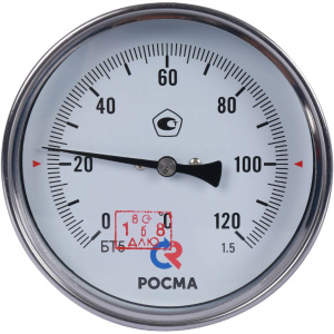 Термометр биметаллический Росма 1/2" БТ-31.211 0-120С, d-63 мм., шток 46 мм. Аксиальный