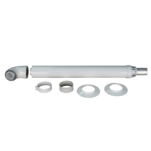 Комплект коаксиального дымохода Arderia 60/100 (отвод, труба с наконечником, накладки) длина 1 метр