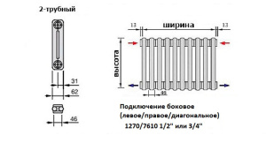 Радиатор стальной Zehnder 3100 №1270/7610 3/4" RAL 9016 подключение боковое универсальное