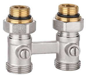 Фитинг двойной со встроенным шаровым краном 3/4" Stout (для двухтрубной системы)